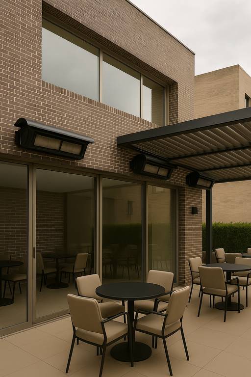 “Calor inmediato, eficiente transforma tus espacios exteriores en lugares confortables todo el año.”